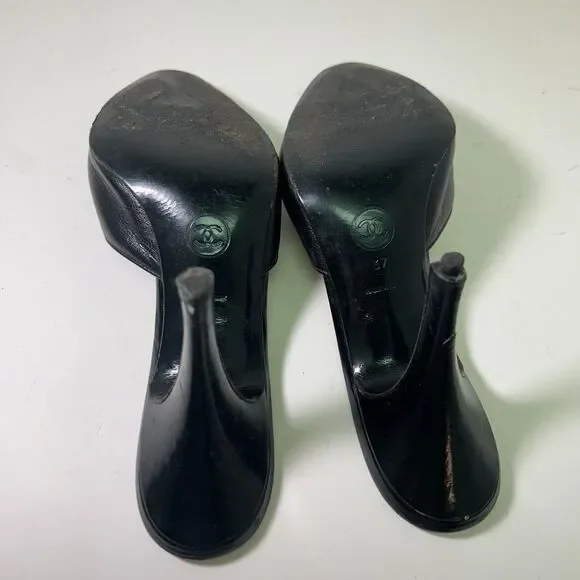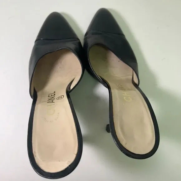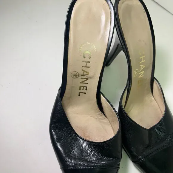*Size:* 37 (EU)*Color:* Black*Material:* All Leather*Condition:* Vintage, Worn, Fairly Used *Made in Italy* A true investment in luxury, these mules are a statement piece that never goes out of style.