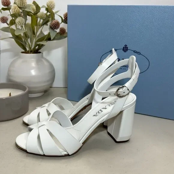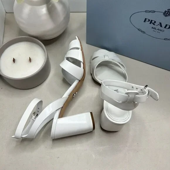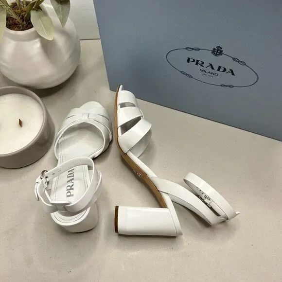 Prada Milano Calzature Donna Spazzolato Sandal Bianco Women IT 36.5/US 6.5