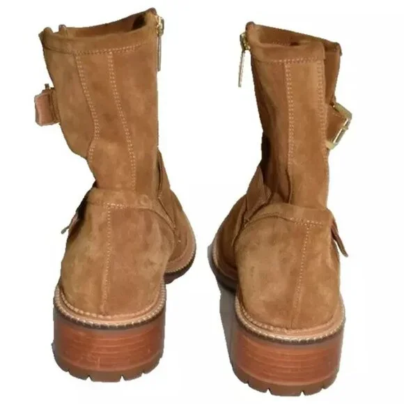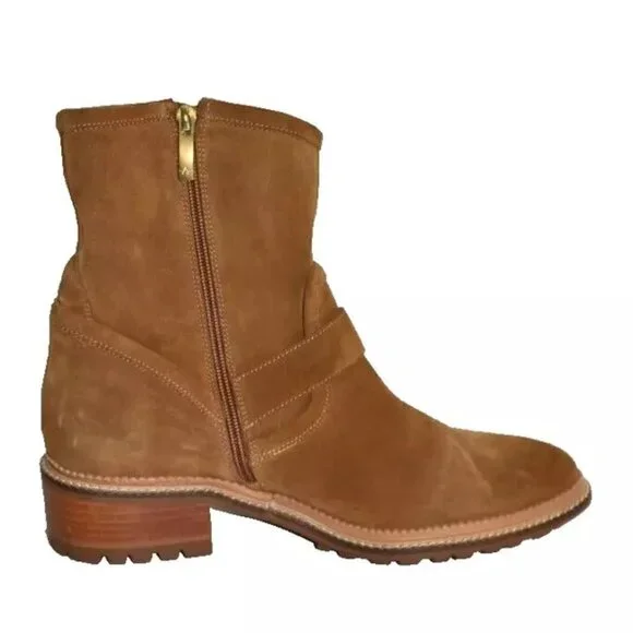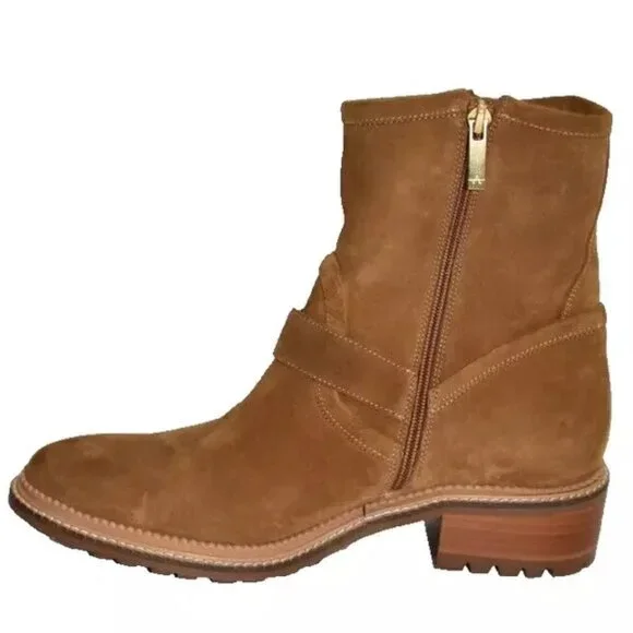 New! Aquatalia Omayda Water Repellent Moto Bootie Boot Suede Came Tan 12 DD461