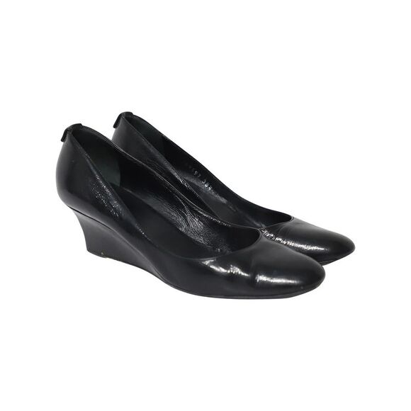 These black wedge from are simple but a must-have. Crafted using leather, and balanced on wedge heels, the round-toe pumps are complete with the logo on the rear. They are high in both style and comfort. Interlocking G Wedge Court Heels in Black LeatherColor:blackSize: EU38.5Material:Leather | Patent leatherCondition: goodSign of wear: scuffed heels, creases on the bodySKU: 180890