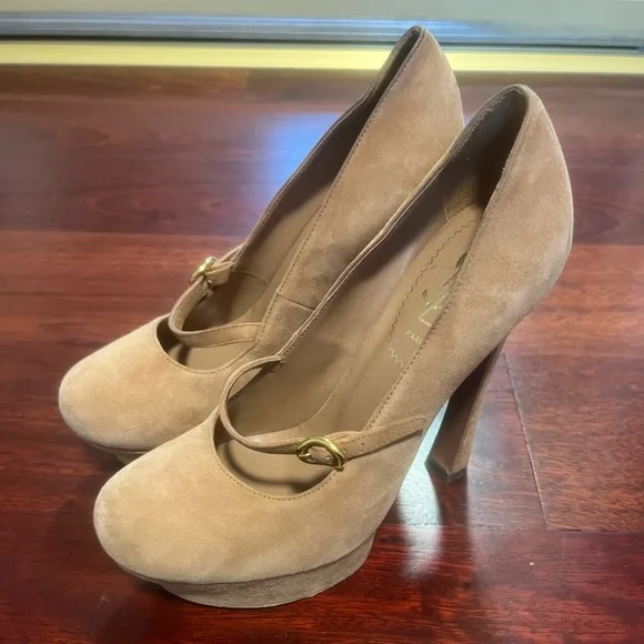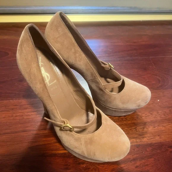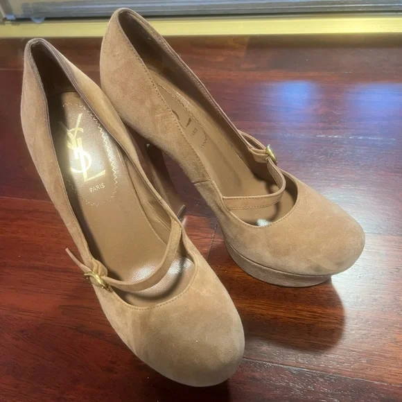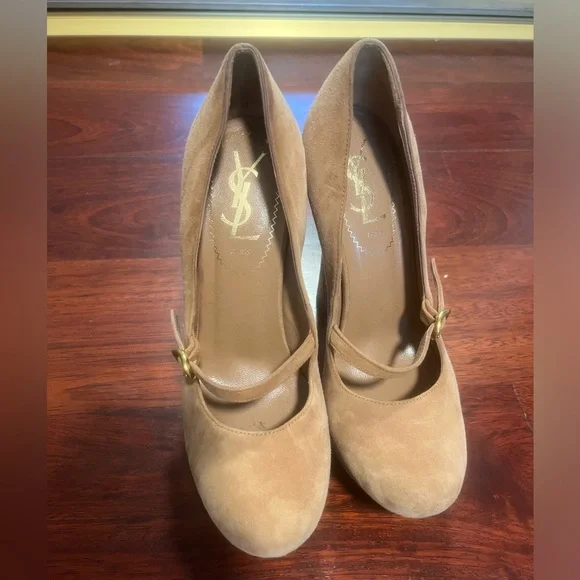 YSL Mary Jane Pumps in beige suede with gold little buckle. Only worn a handful of times. Size 36