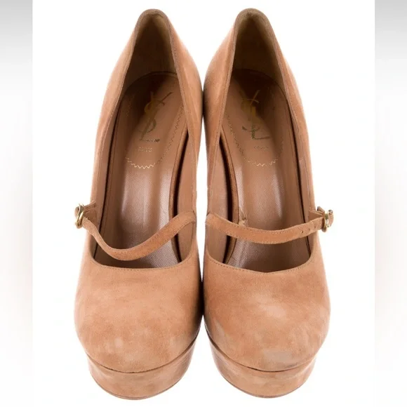 YSL Mary Jane Pumps in Beige Suede