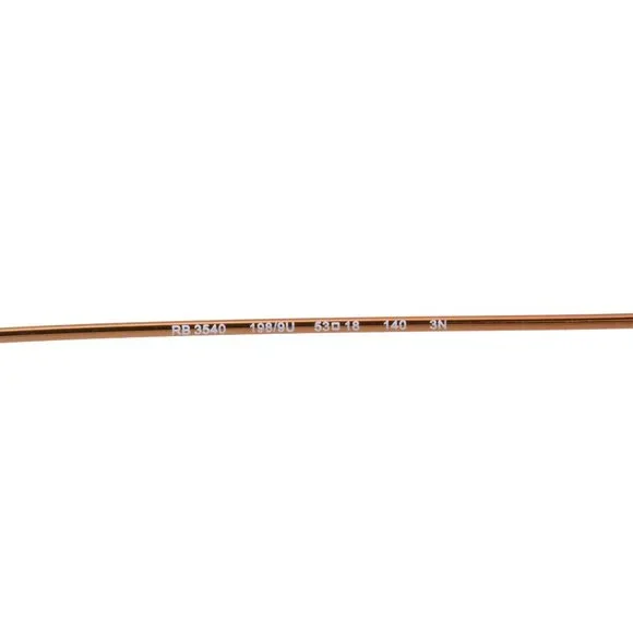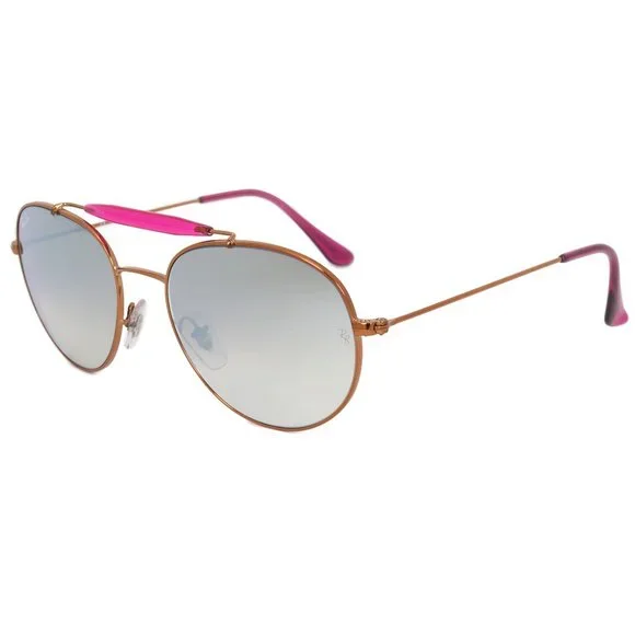 Embrace the allure of bronze copper frames enveloping teardrop lenses that seamlessly flow into a unique copper bridge and top bar, elegantly clad in translucent pink acetate. The delicate arms, crafted from bronze copper metal, are gracefully tipped with translucent pink acetate. Completing the ensemble, the brown gradient lenses boast a mesmerizing grey mirror finish.* Aviator sunglasses * 100% UV protection * Size: 53-18-140 mm * Logo at the temple * Designer package included * RB3540-198-9U-53 * Made in Italy