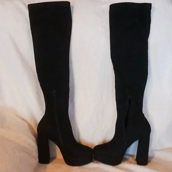 Thigh high velvet boots