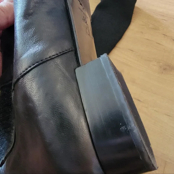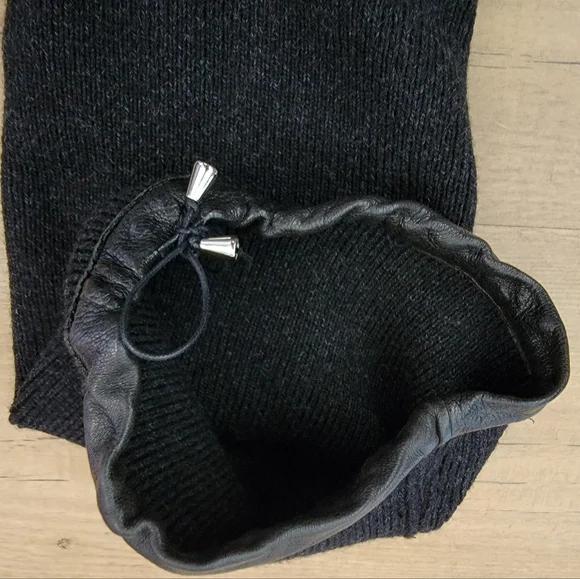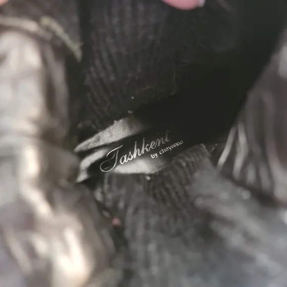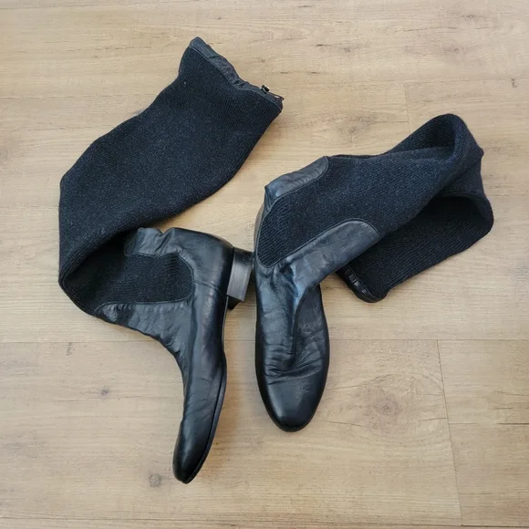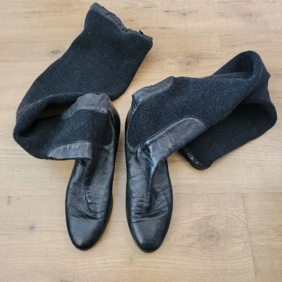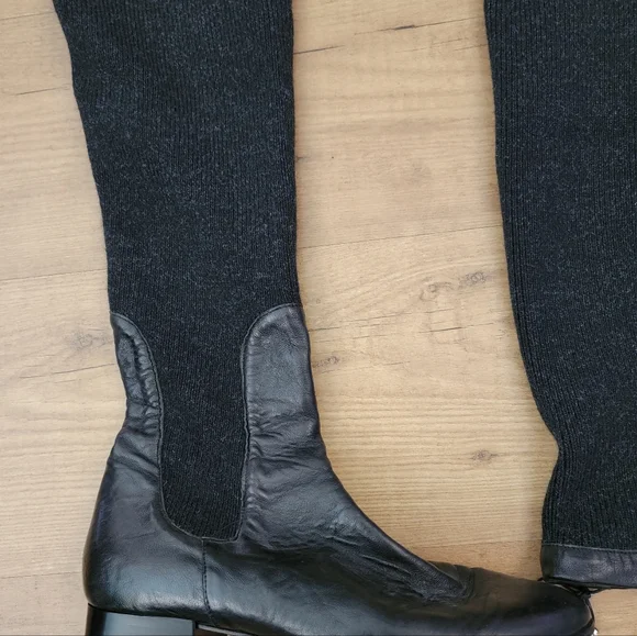 Tashkent by Cheyenne Stretch Class The hand-knit shaft expands to fit any calf. Over the Knee Cashmere Leather Boots. Charcoal cashmere knit. Black Leather 1” heel / 23” Leg Height. Made in Italy Size 40 (US 9). In excellent pre-owned condition. Sole has a stamp logo "long life indiana."