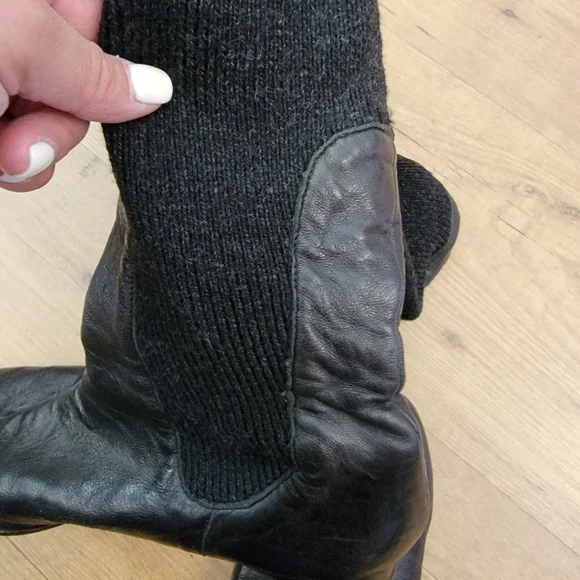 Tashkent by Cheyenne Stretch Class The hand-knit shaft expands to fit any calf. Over the Knee Cashmere Leather Boots. Charcoal cashmere knit. Black Leather 1” heel / 23” Leg...