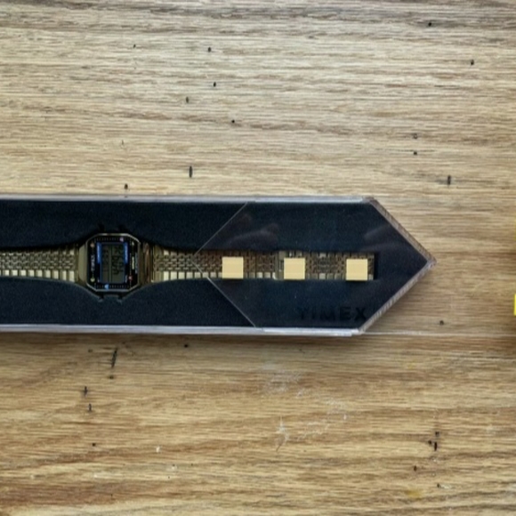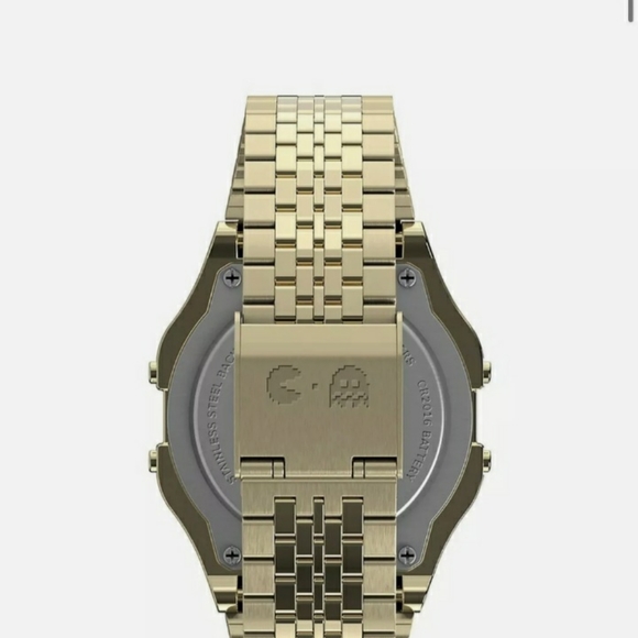 NEW! TIMEX T80 x PAC-MAN TW2U32000 SS GOLD TONE STAINLESS STEEL. Cokes with box etc! I also have the Black version as well!SPECS:INDIGLO® Night-LightDigital Chronograph Measures to 1/100 SecondsDaily AlarmMonth, Day and Date DisplayProduct: TW2U32000YBCase Width: 34 mmCase Material: ResinBand Color: Gold-ToneBuckle/Clasp: Clasp (Self-Adjust)Case Color: Gold-ToneCase Finish: PolishedCase Shape: SquareCase Size: Full SizeCRYSTAL/Lens: AcrylicDial Color: DigitalDial Markings: DigitalWatch Movement: DigitalWATER RESISTANT