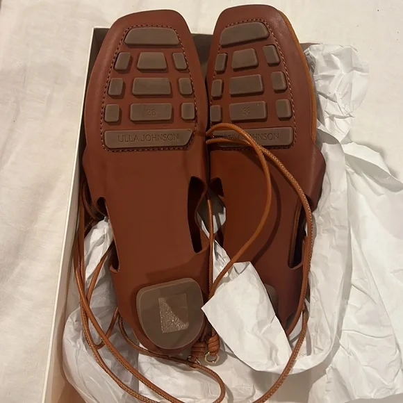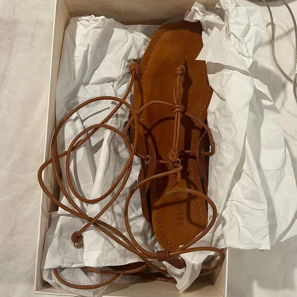 Suede and leather lace up sandals in a rich rust one with hood hardware details.Brand new.Never worn.I purchased these for my daughter for Christmas but they didn’t fit and it’s past the return date. Comes with the box and dust bag.They run big.These would fit 8.5 - 9.