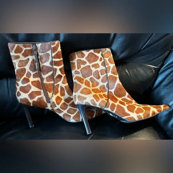 Ralph Lauren Calf Hair Spot Print Half Boot, new, never worn, with side zip.