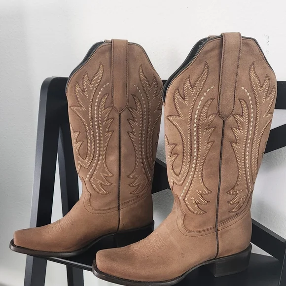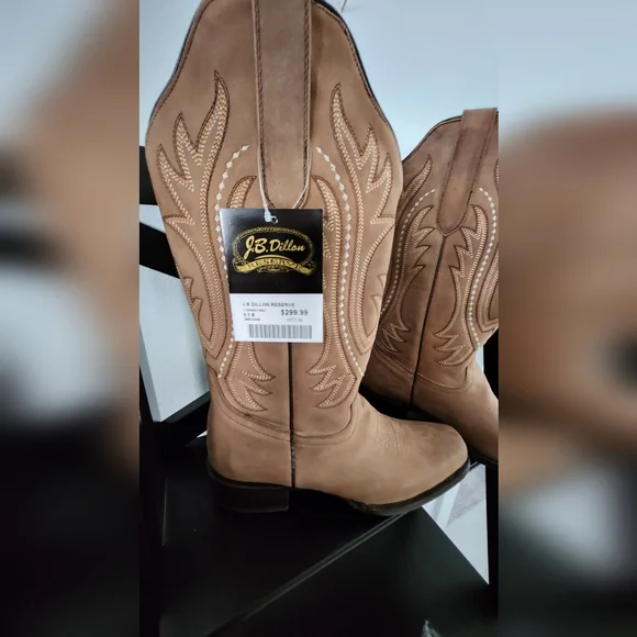 New With Tags. Never worn Brand New JB Dillon Women´s Boots. Size 9.5Great boots. Beautiful brown leather with intricate stitching. From smoke free home.
