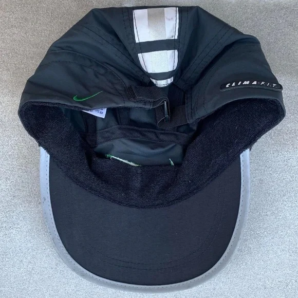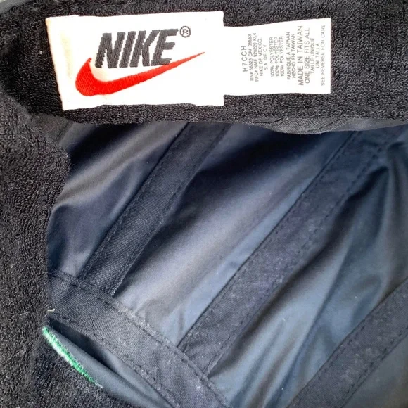 -Good condition, has mark on brim and minor wear to white area on back-Nike White 90s TagVintage 90s Nike Clima FIt 3M hat. When you think of 90s tech hats I think of Tommy, Nautica and DKNY but this Nike one is right up there with those fashion brands. It has 3M around the brim with a white and silver design down the middle. It’s a panel design with a green embroidered Swoosh on front and back left.