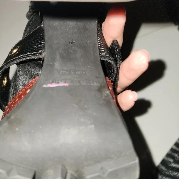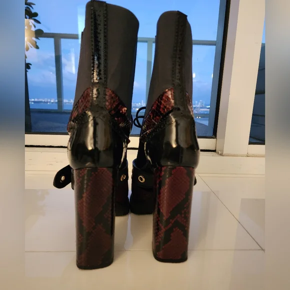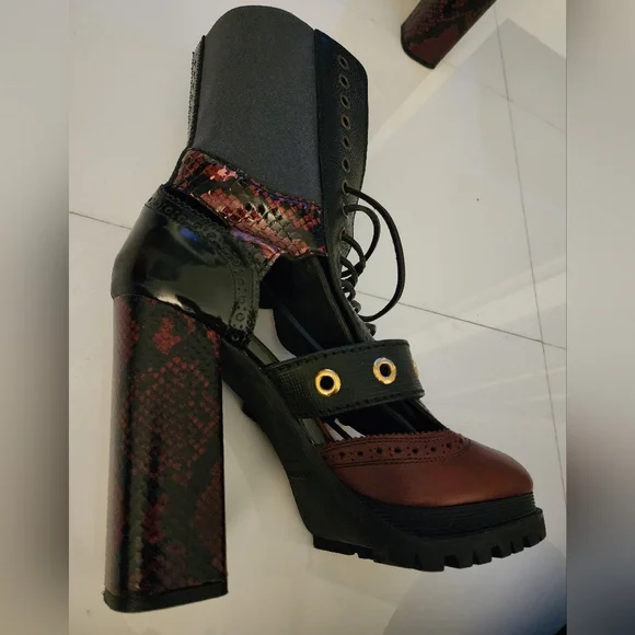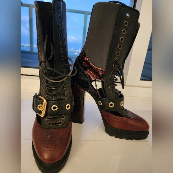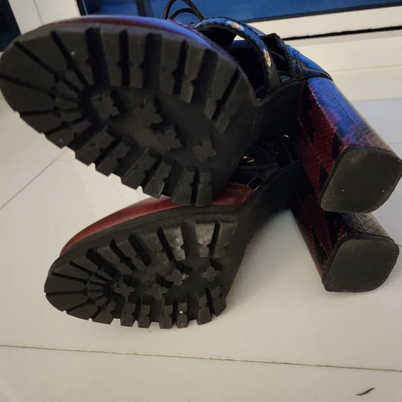 Burberry platform lug sole lace up boot; red snake and peekaboo detail. Size 40