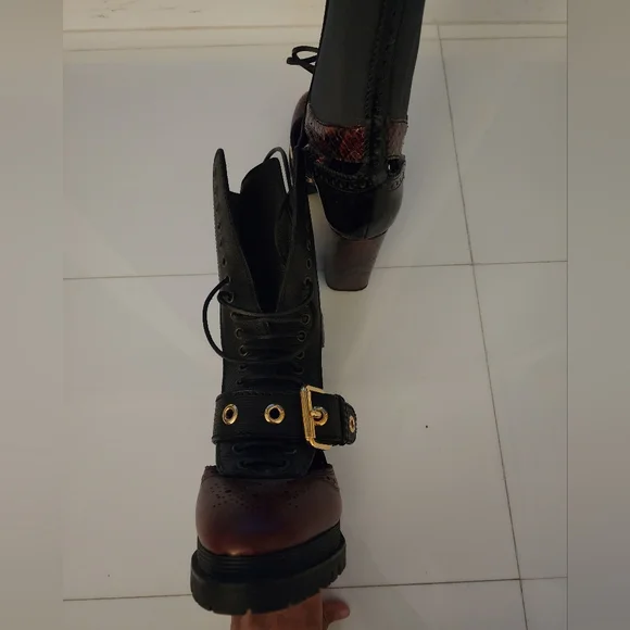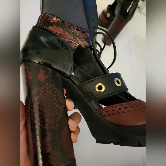 Burberry platform lug sole lace up boot; red snake and peekaboo detail. …