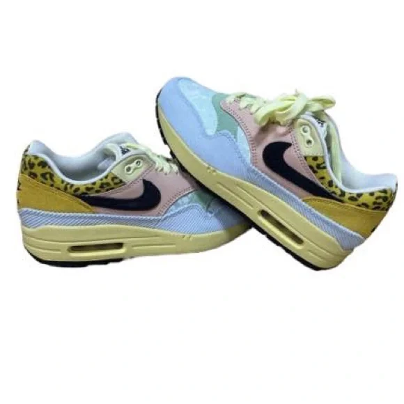 Nike Air Max 1 Spring Great Indoors Sneakers in Blue Yellow. Pink - US 6 WMNSIncludes branded dust bag and extra pair of laces. Details:-Lace Up-Caged Effect-Mesh Lining-Rubber SolesCondition: 9/10 Condition with BoxThese shoes are in the original box. These shoes have been authenticated. There will be no signs of wear, the shoes will be in factory/store condition. Photos are taken of the original item by our staff. Please reference the pictures to verify the condition and see what is included in the listing.Photos:All photos are of the original item. Please reference the pictures to see what is included in the listing.