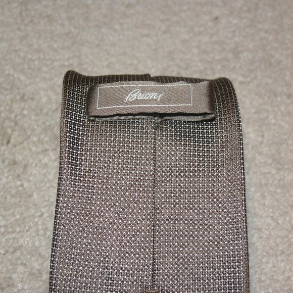 Brioni Light Brown Tic Pattern Handmade Silk Tie