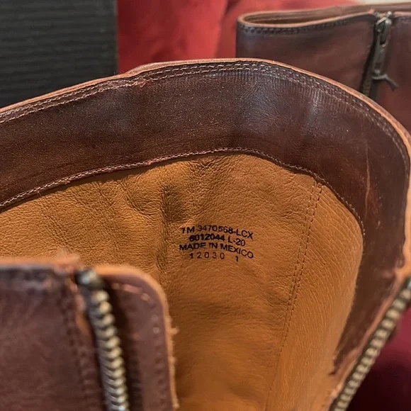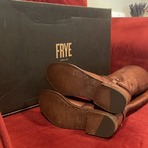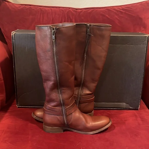 This listing is for a Frye Co Melissa Tall Extended Calf Redwood A cool (and easy) way to update a favorite boot is by incorporating a belted bridle strap to an already classic...
