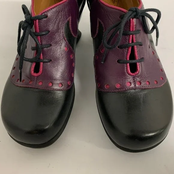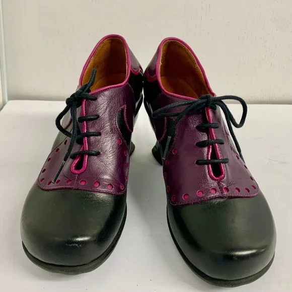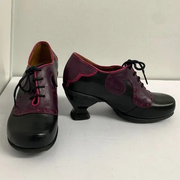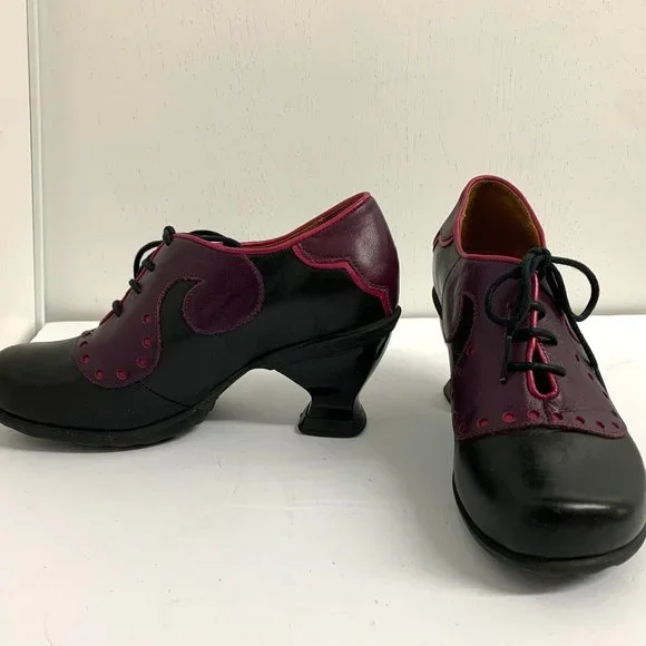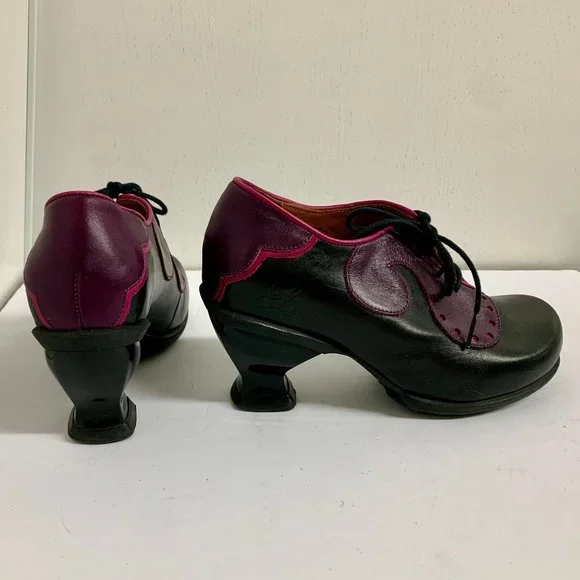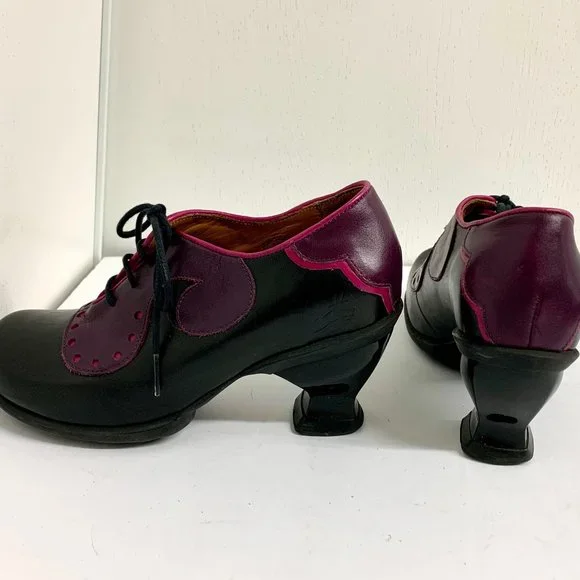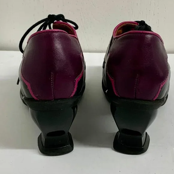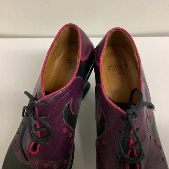 John FLUEVOG Kitschy Boom Boom Viv 6.5 lace-up pump heels black purple pink