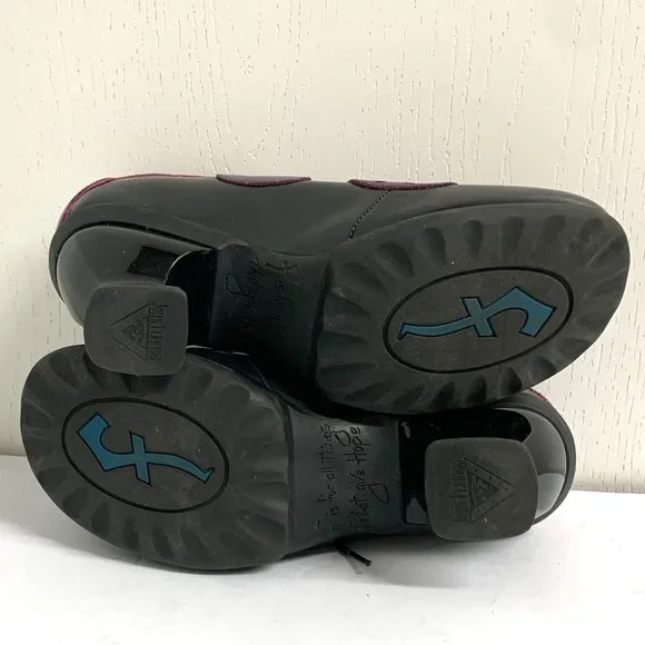 Viv is kickin´ it old school. Her design is straight out of the Fluevog history books and her style is as eternal as a red lip. The Kitschy Kitschy Boom Boom Family exhumes classic style and Viv´s curves and funky, swirly detail epitomizes Victorian styling and modern eccentricity. She has the rubber soles of The Hope Family, aniline leather of The Mini Family, and a 2.5" heel reminiscent of The Wearever heel. She´s the perfect addition to The KKBB Family and any Fluevoger´s wardrobe.Seller is the original owner.Shoes are in very good condition except for a couple of scuff marks on the toes.I hate to part with something so adorable but my feet have become too wide for them.