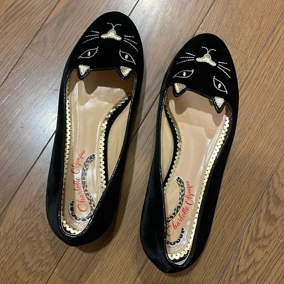 Charlotte Olympia Kitty FlatsComes with shoe bagIn excellent conditionAnti slip grid pads added onto sole