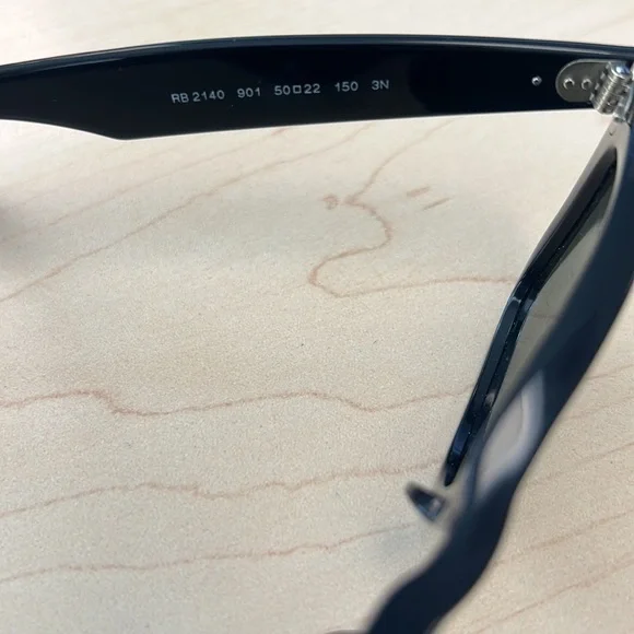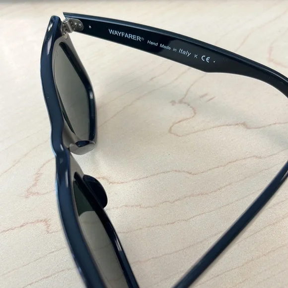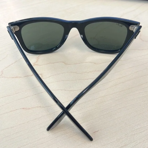 Unisex Ray Ban Wayfarer meteor classic sunglasses polished black frames and dark green lenses, used with brown case