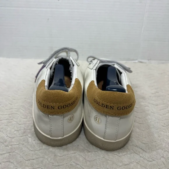 GOLDEN GOOSE Old School White Leather Women’s Size 41 US 10.5 Sneakers. Sneaker is in used condition and has signs of wear but sneaker is still in great condition. Upper leather is in excellent condition and very clean , inside is clean and the soles are in great condition. Nice comfortable fashion sneaker for casual wear. Condition is pre-owned. Shipped with usps priority mail.Sold as pictures. Thank you!Feel free to message me for any questions.Thank you