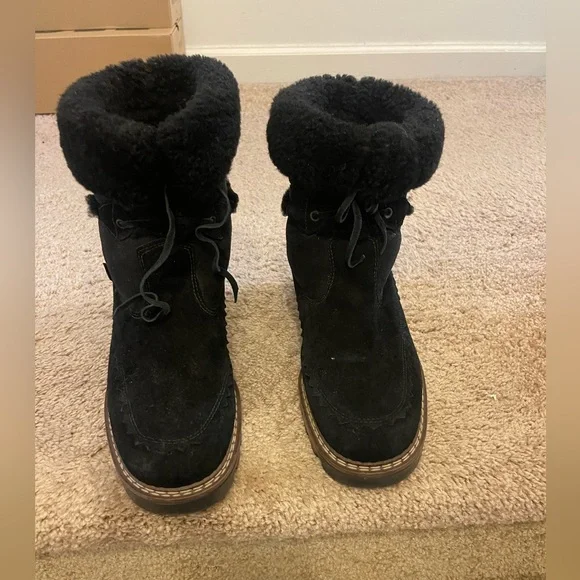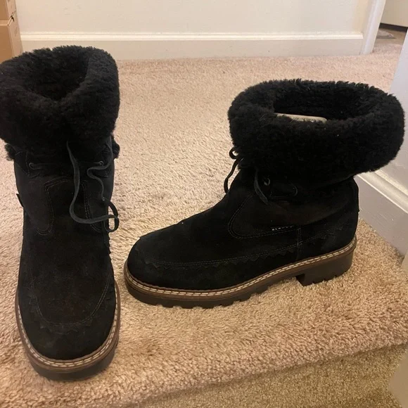 Vintage Black Leather Shearling Boots, Blondo Made in Canada, Fur Lined Sherpa Fleece Waterproof Winter Boot, Women´s Size 10 GREAT CONDITION
