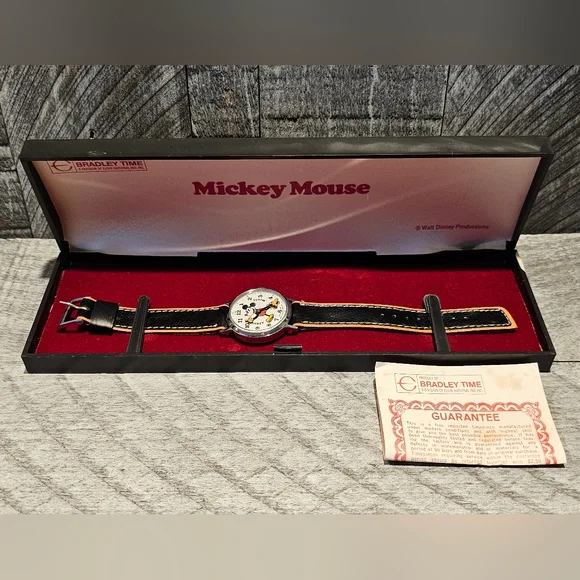 1970s Vintage Bradley Time Disney Mickey Mouse Pie Eye Wrist Watch Orignal Case