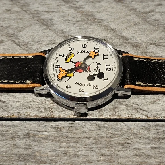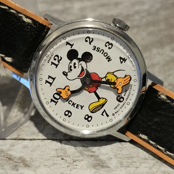 Featuring a 1970s Vintage Bradley Time Disney Mickey Mouse Pie Eye Wrist Watch Orignal CaseThe watch features a manually wound movement that is not currently running.While the...