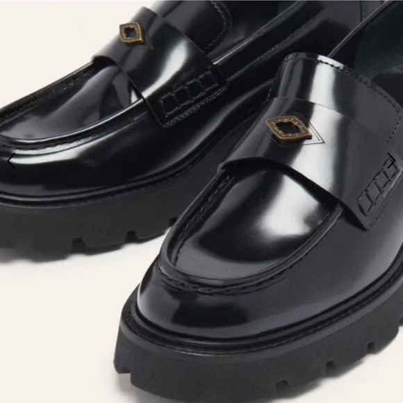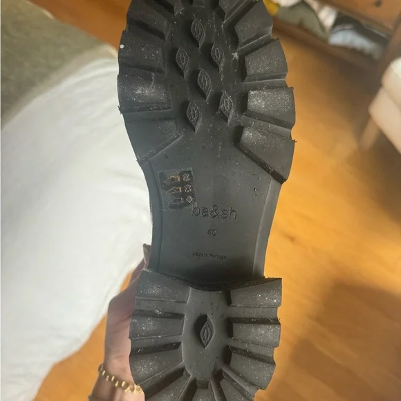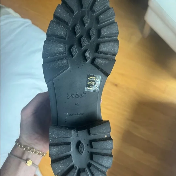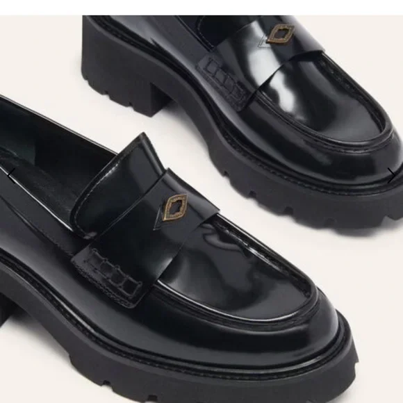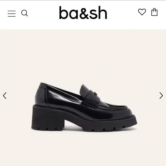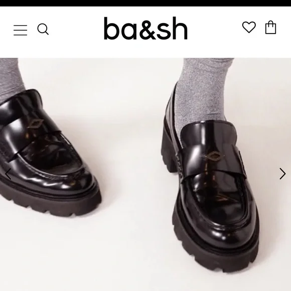Ba&sh CLAYMENCE loafers are absolutely adorable. A modernized version of loafers, they are made of leather and are made in Portugal. The heel is square and 5.5 cm high. They are notched to ensure perfect grip on the ground, you can wear them to go to the office or to go out. The very light sole, this model is therefore very comfortable. We love the tab at the front, decorated with a diamond rivet, THE ultimate touch of elegance. Pair with straight cut pants or a short skirt and visible socks!- Leather moccasins- 5.5 cm heelI have only worn them once! I originally bought for work purposes! Size 40 - fits 8.5/9. No longer sold online in the US.