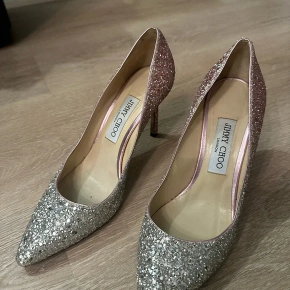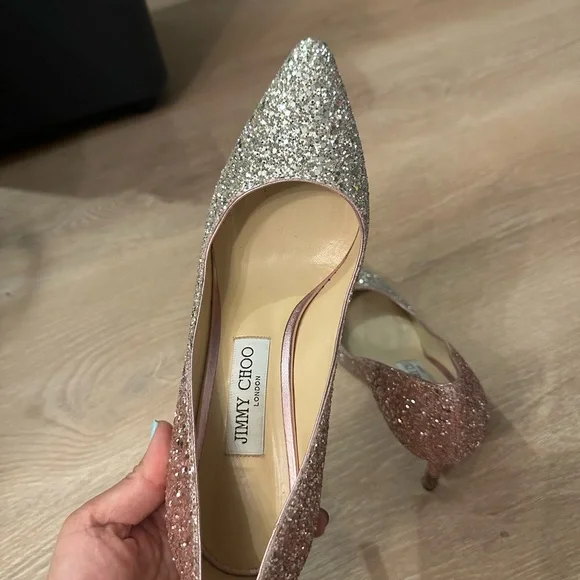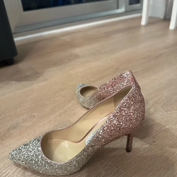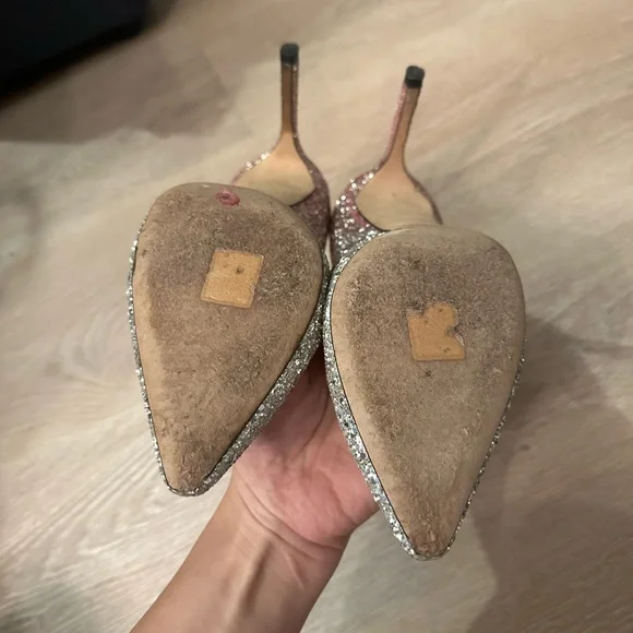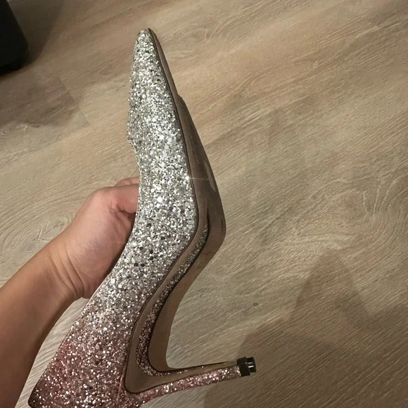 This is the most comfortable pump I have. It’s pink and silver ombré gorgeously.It’s so bling and pretty. I bought it from Farfetch. If you don’t flip the bottom up, you won’t think it’s worn before.