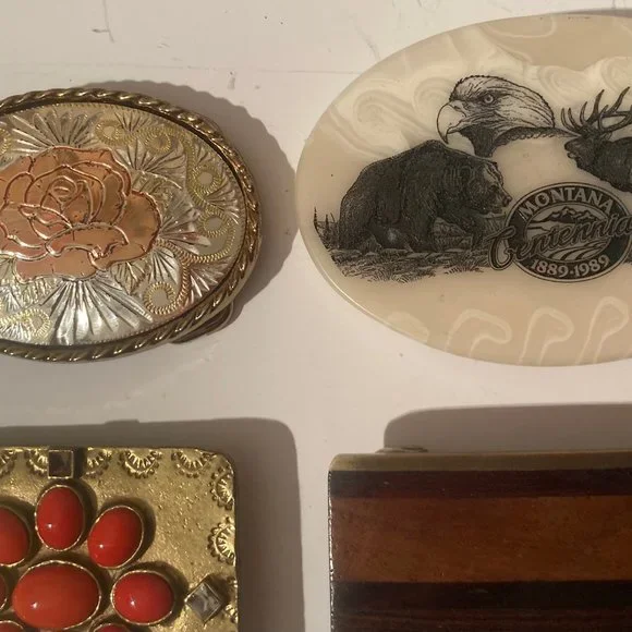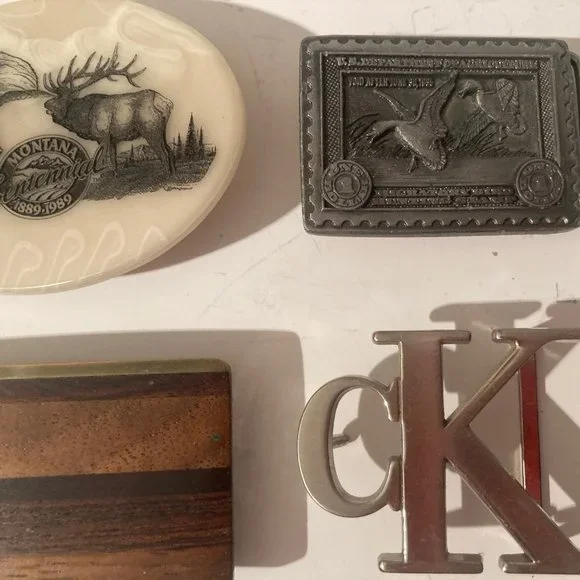 Vintage Lot of 8 Assorted Different Country and Western Wear Style Belt Buckles, Elk, CK, Jordache, Country & Western, Art, Resell, For Belts, Fashion, Shelf Display, Some May Need Work, Nice Belt Buckles, Wholesale
