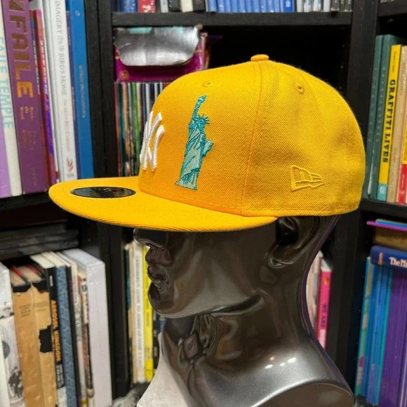 "BRAND NEW"NEW ERA X NEW YORK YANKEES STATUE OF LIBERTY FITTED HATCOLOR: TAXI YELLOW W/ SJY BLUE UNDER VISOR100% POLYESTERMADE IN BANGLADESH
