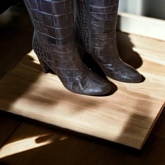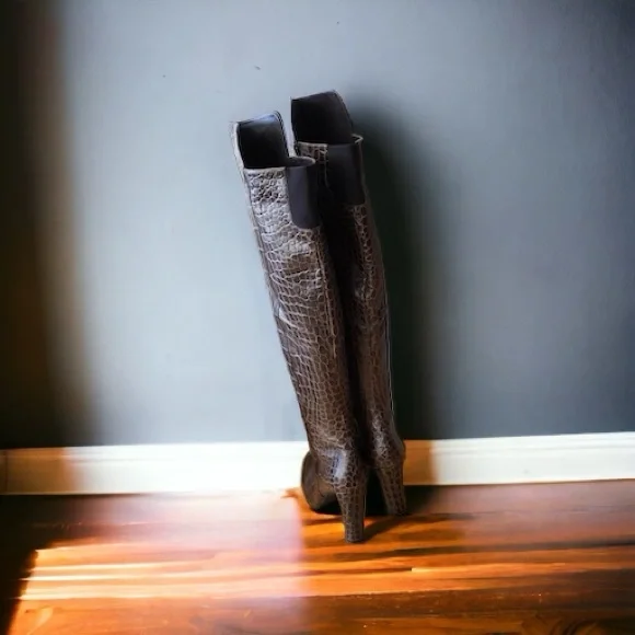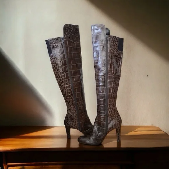 STUART WEITZMAN Vigo Crocodile Embossed Leather Over The Knee Boot Heel Sz 10 M