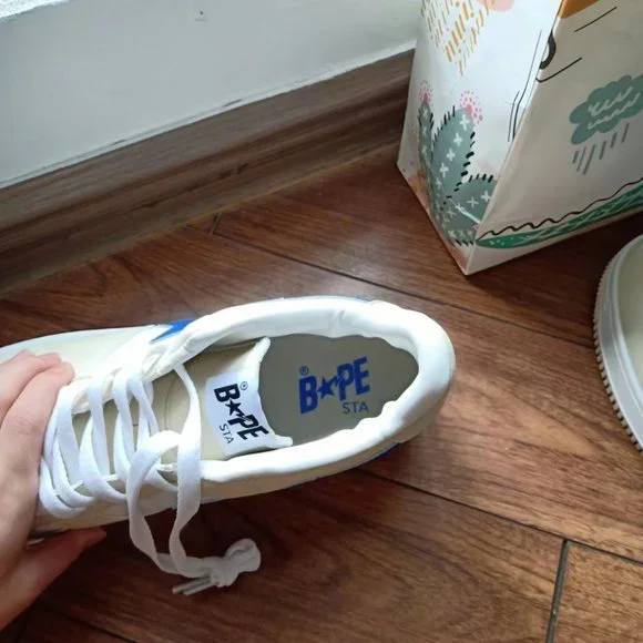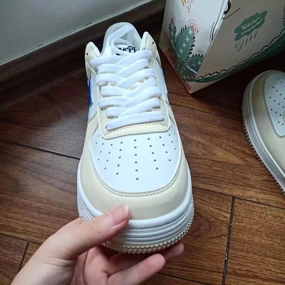 BAPE STA x Marvel joint cream color block blue loafersColor: milky white blue Closure: tieMaterial process: patent leather Lining material: cotton Sole style: flat heelPattern:...