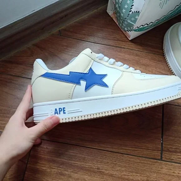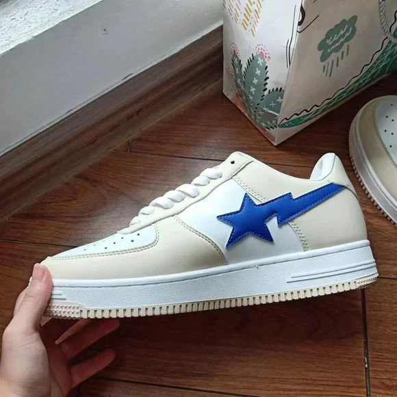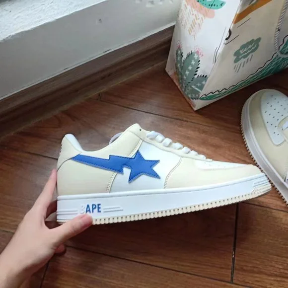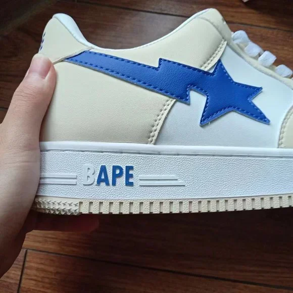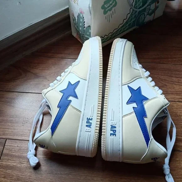 BAPE STA x Marvel joint cream color block blue loafers