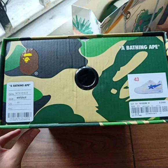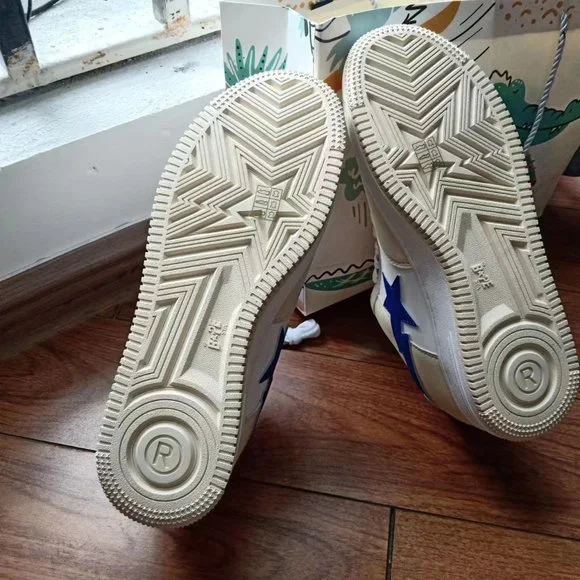 BAPE STA x Marvel joint cream color block blue loafersColor: milky white blue Closure: tieMaterial process: patent leather Lining material: cotton Sole style: flat heelPattern: color block upper material: top layer cowhide insole material: clothThese shoes are unisexShoe size: 43 yards