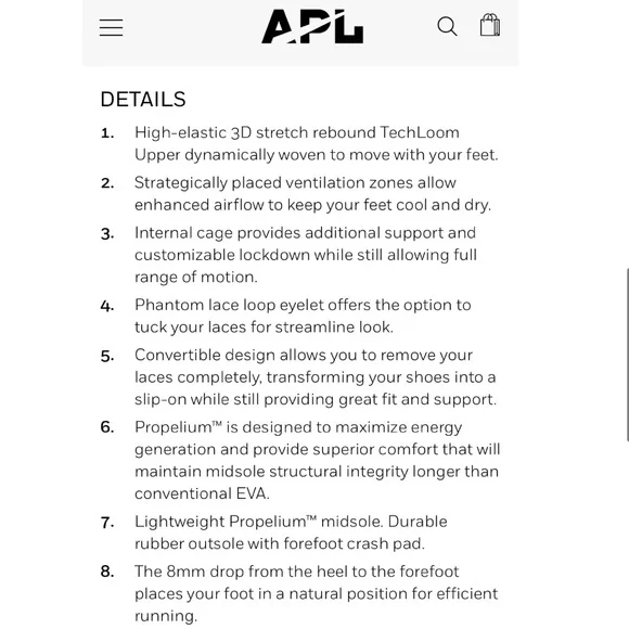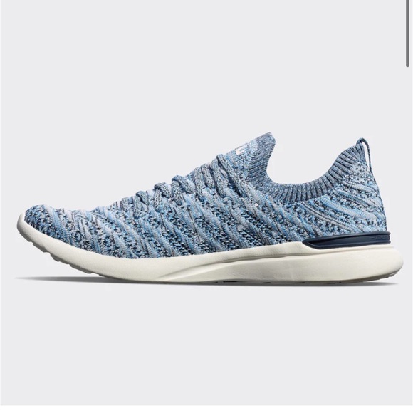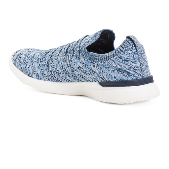 New in boxAPLWomen´s TechLoom WaveMidnight / Ivory / MelangeBEST FOR: EVERYDAY RUN, EVERYDAY WALKING, YOGA, TRAVEL, LIFESTYLEMACHINE WASHABLE LIGHTWEIGHTPerformance design is at the forefront with this spectacular slip-on runner featuring a dynamic, stylish high-elastic 3D stretch rebound upper.Performance design is at the forefront of the TechLoom Wave. Featuring a newly developed high-elastic 3D stretch rebound TechLoom upper that dynamically moves with your feet. The upper is designed to allow increased stretch front to back where your feet articulate, while also providing lateral and medial support. An internal cage provides additional support and customizable lockdown when pulling the laces tight. An integrated lace loop allows you to tuck the laces for a streamline look. The seamless upper design allows you to remove the laces completely to transform the TechLoom Wave into a stylish slip-on with the same great fit.The Wave uses APL’s proprietary Propelium® technology, designed to maximize energy generation and provide superior comfort while it maintains midsole structural integrity longer than conventional EVA. The newly developed midsole and traction pattern incorporate a durable rubber outsole with a forefoot crash pad. 8mm drop. Wt. 7.1 oz.Lululemon, on running