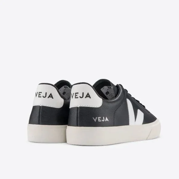 Veja has a strong focus on transparency, fair trade and environmental responsibility. These ´Campo´ sneakers are made from black leather with contrasting white ´V´ logos and heel tabs stamped with the brand´s moniker. The thick sole is created using wild rubber harvested from the Amazon rainforest. Wear them with feminine dresses or jeans