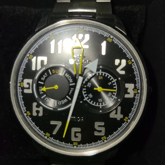 In original boxBlack face with neon hands for easy read.Stainless steel namd