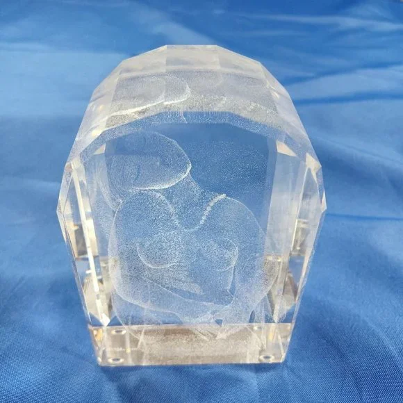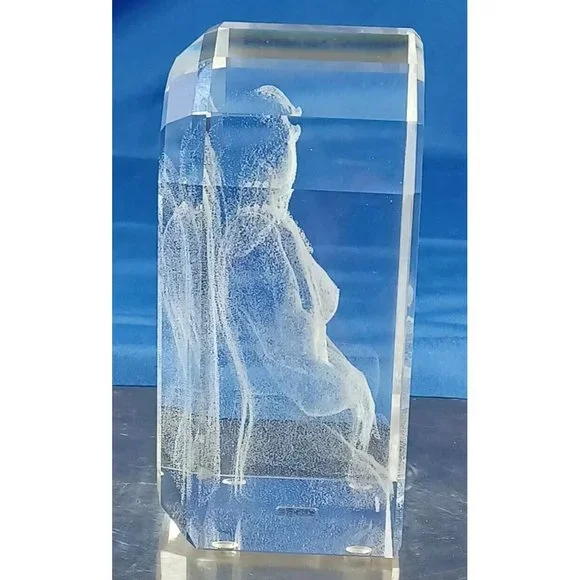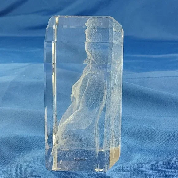 Picasso Le Reve The Dreamer Lovely Woman Crystal Prism 3DPaperweight Art DecoThis is AMAZING! My pictures DO NO JUSTICE! I have a really hard time taking pictures of clear objects.For your consideration is this gorgeous Crystal Laser Etched 3D reproduction of Picasso´s "La Reve".Le Rêve (The Dream), is an oil painting created by Pablo Picasso in 1932, remains one of the artist´s most recognisable works. The painting depicts Marie-Thérèse Walter, Picasso´s lover at the time, in a dreamy state with her hands on her abdomen.Style: Cubist, Art DecoColor: Clear and FrostedMeasurements x 3.25 x 2.25Weight 3 lbsFeatures:• Cubist/Art DecoCondition: Pre-Owned Like NewIt looks brand new!