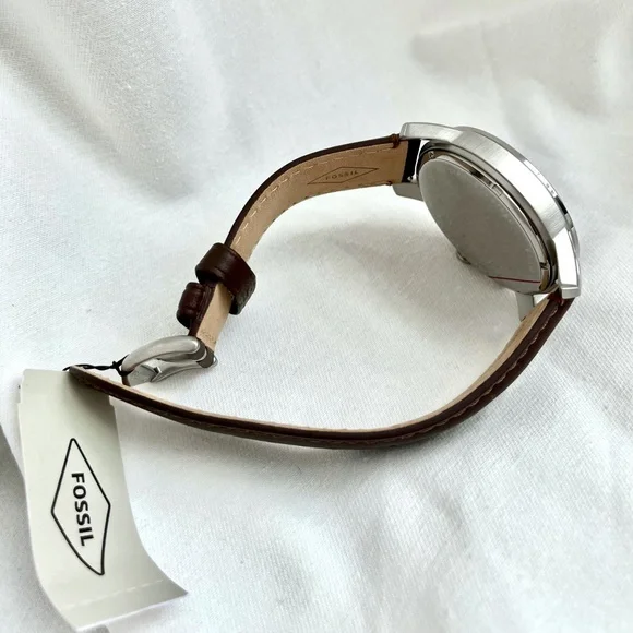 Item Number FS4735Fossil: GrantCase Size: 44MMMovement: Quartz ChronographStrap: Genuine LeatherWater Resistance: 5 ATMCase Material: Stainless SteelThis watch has been opened to take picturesand has been shown to others in person, but it is a brand new never used item. I value transparency so please ask any questions. I’m available for local pick up and delivery in Indianapolis.