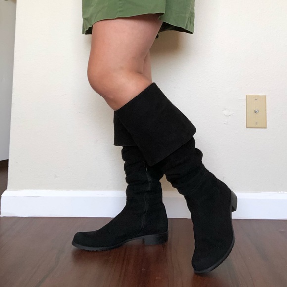 Stuart Weitzman Boots, Size 9MThese are SO cool and are really thigh high, rather than knee high, boots. They can also be folded down to be a bunch of different lengths!Measurements: Height: 28”Heel height: 1.5”Foot length: 10.75”Arch length: 2.5”Across ball length: 3.75”Zipper length: 9.75”Calf circumference: 15” unstretched, 15.5” stretched Thigh circumference: 18”I’m happy to get any other information that you might want! Retailed for $800+ and get yours here for a steal!