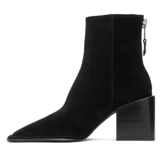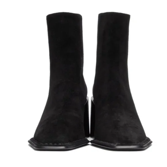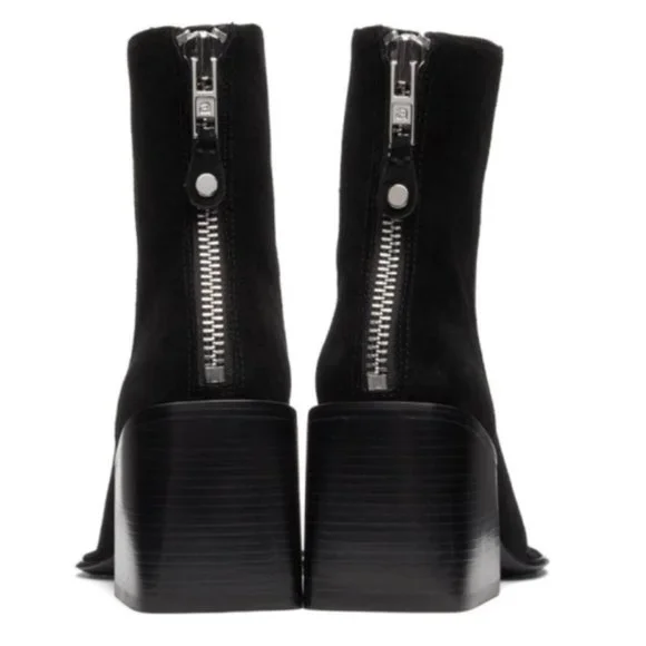 Alexander Wang Parker Boot in Black. Suede upper with leather sole. Back zip closure. Stacked heel. Square toe. Heel measures approx 3Shaft measures approx 6 H. Color: Black Size: US6, EU36 Condition: New