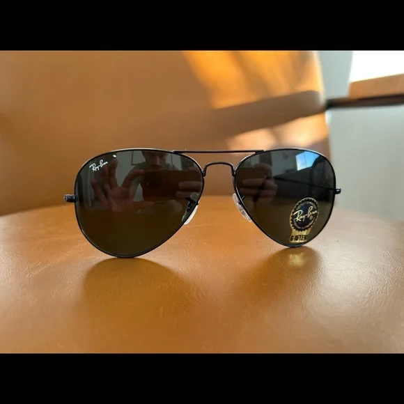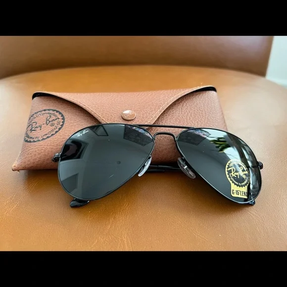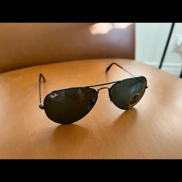 Brand new Ray Ban Aviators (Black metal and lenses). Never been worn before. Comes with everything in the photos. - G-15 lenses- 100% UV protection- tag still on lenses but I don’t have the original box anymoreGender neutral but PM requires one to be selected