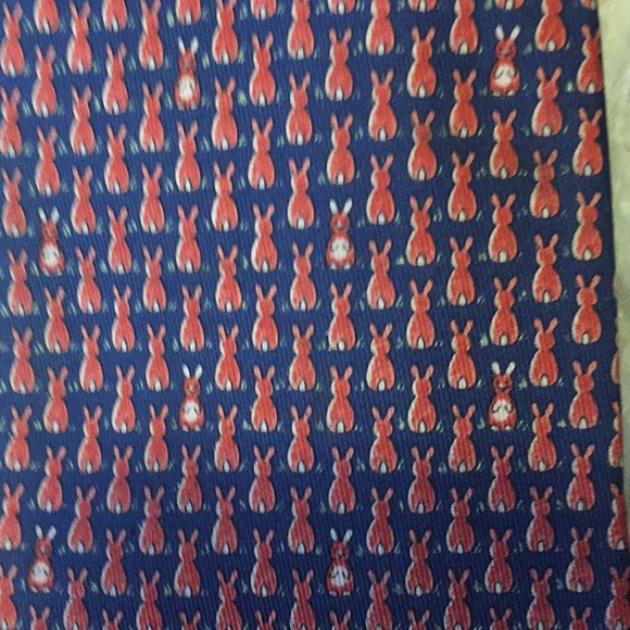 Rust colored bunny rabbits populate a deep navy field. In perfect condition!