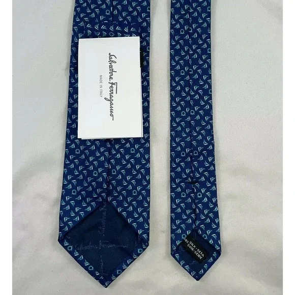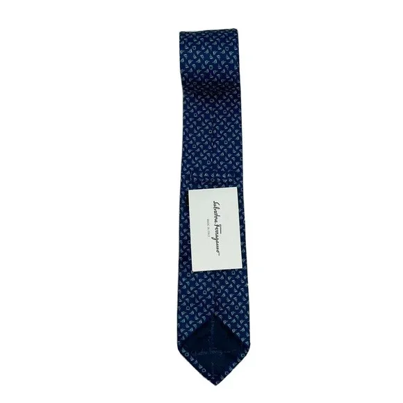 Salvatore Ferragamo Blue Horsebit Wave Pure Silk Tie 3.25" NWT