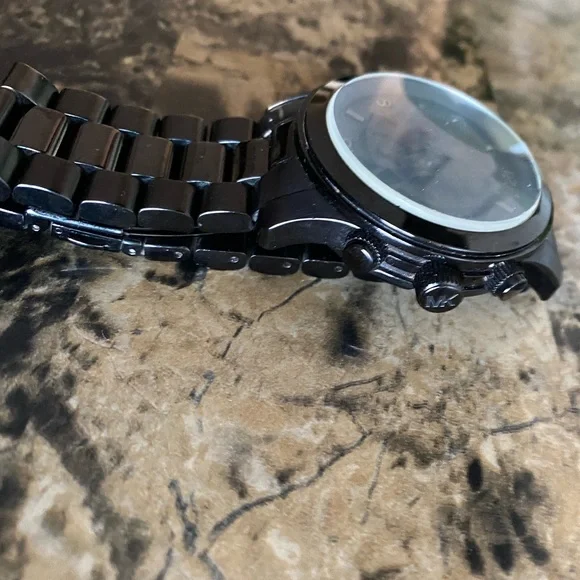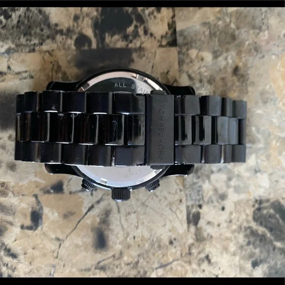 Michael Kors mens runway black ion plated stainless steel braclet watch 45mm.