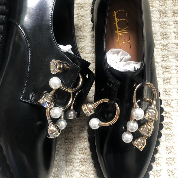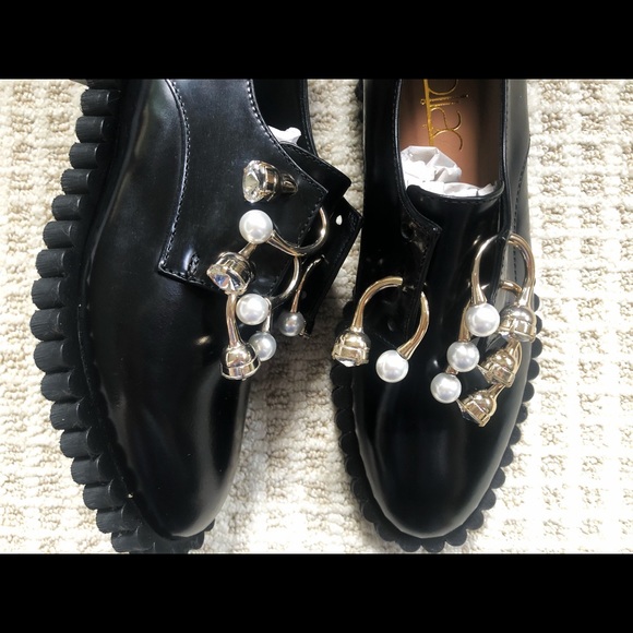 Francesina piercing black cake loafers eur 36, with Rings and Faux Pearls. Condition is brand new never worn with box and dust bag.