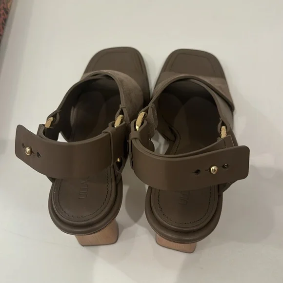 Beautiful brown leather fall sandal in perfect condition. Wooden heel. Very comfortable. Original box and dust bag included.