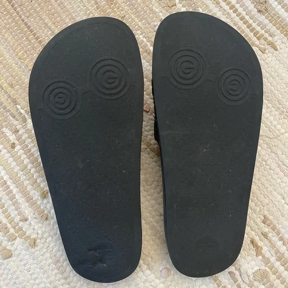 Originally bought as a men’s size 6 for myself as a woman who wears a size 8 shoe. They fit my foot perfectly - in great condition other than small rip in the bottom of the left sandal. Also each sandal comes with its own dust bag!